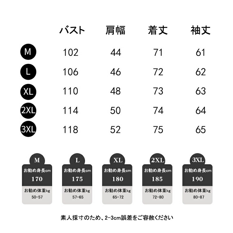 サイズ: M(S相当) L(M相当) XL(L相当) 2XL(LL相当) 3XL(3L相当)