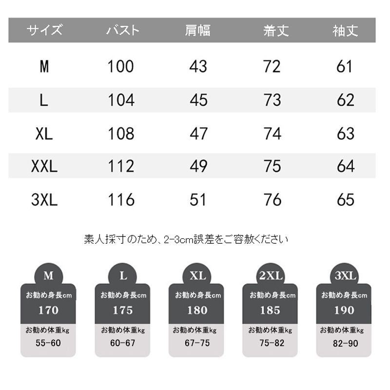 サイズ: M(S相当) L(M相当) XL(L相当) 2XL(LL相当) 3XL(3L相当)
