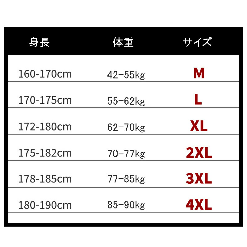 サイズ: M(S相当) L(M相当) XL(L相当) 2XL(LL相当) 3XL(3L相当) 4XL(4L相当) 5XL(5L相当)