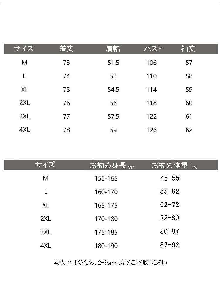 サイズ: M(S相当) L(M相当) XL(L相当) 2XL(LL相当) 3XL(3L相当) 4XL(4L相当)