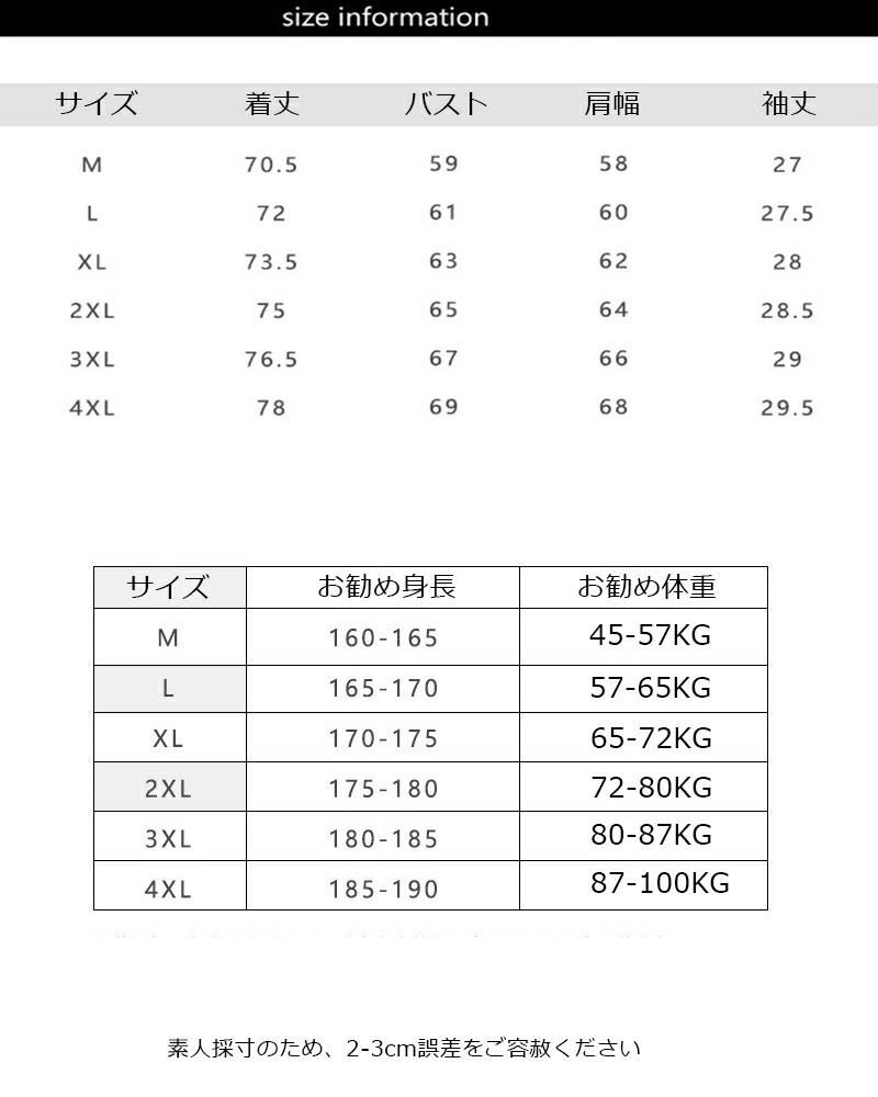 サイズ: M(S相当) L(M相当) XL(L相当) 2XL(LL相当) 3XL(3L相当) 4XL(4L相当)