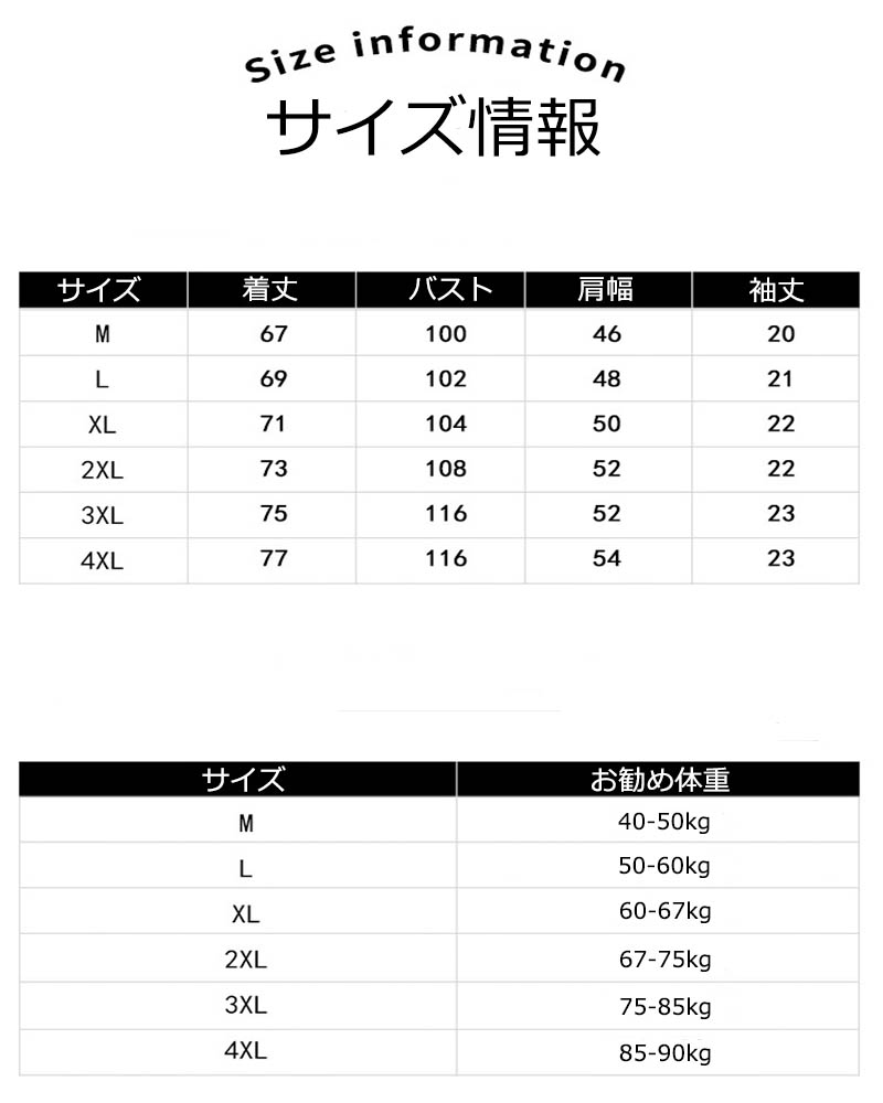 サイズ: M(S相当) L(M相当) XL(M/L相当) 2XL(L/LL相当) 3XL(LL/3L相当) 4XL(3L/4L相当)
