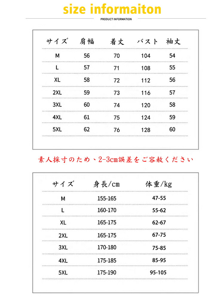 サイズ: M(S相当) L(M相当) XL(L相当) 2XL(LL相当) 3XL(3L相当) 4XL(4L相当) 5XL(5L相当)