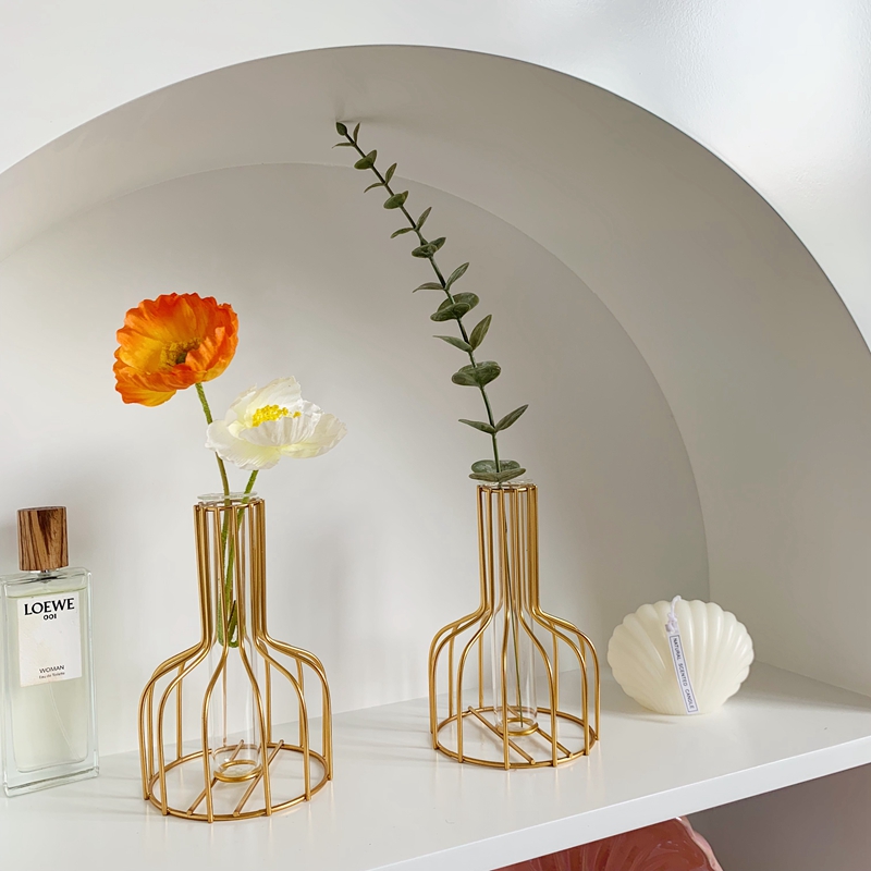 韓国韓国雑貨フレーム花瓶一輪挿し白透明クリアガラスおしゃれ可愛いカフェインテリア玄関用北欧小さい雑貨ゴールド金シンプルカフェ