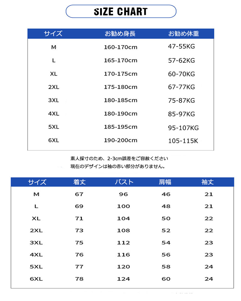 サイズ: M(S相当) L(M相当) XL(M/L相当) 2XL(L/LL相当) 3XL(LL/3L相当) 4XL(3L/4L相当) 5XL(4L/5L相当) 6XL(5L/6L相当)