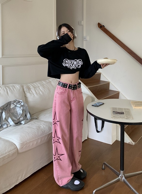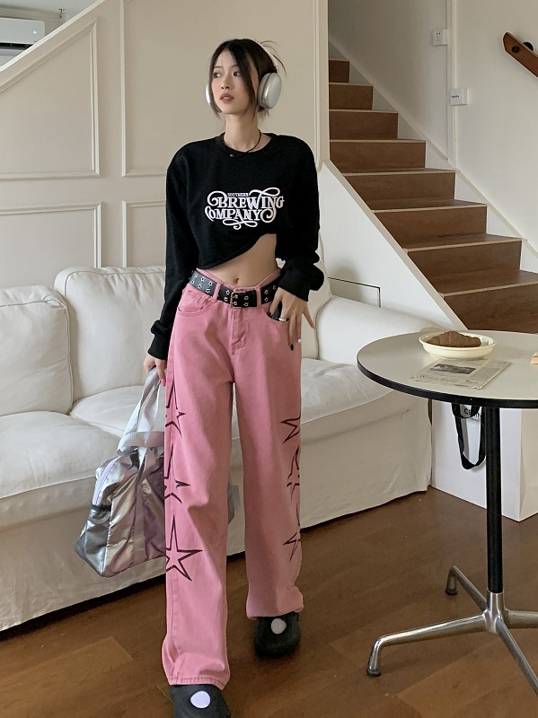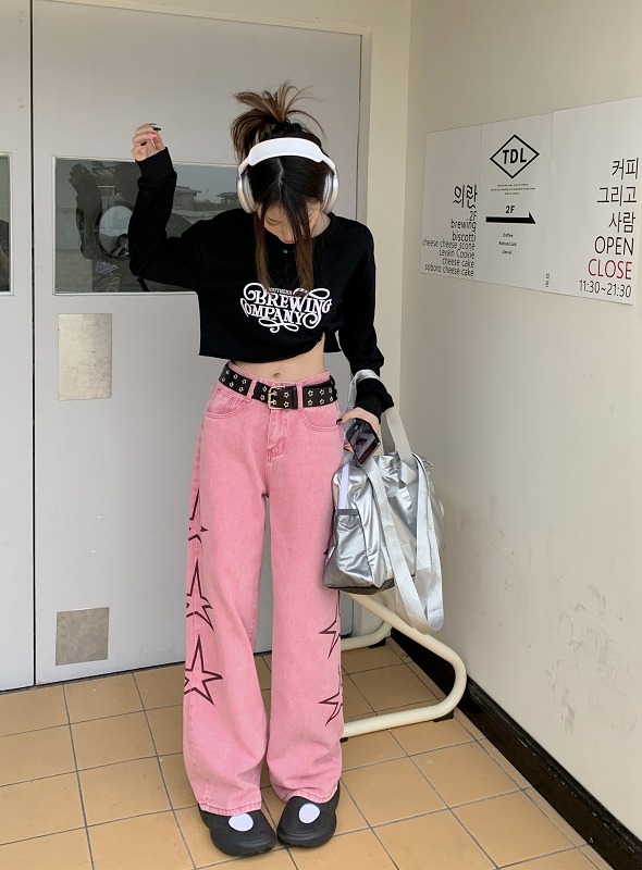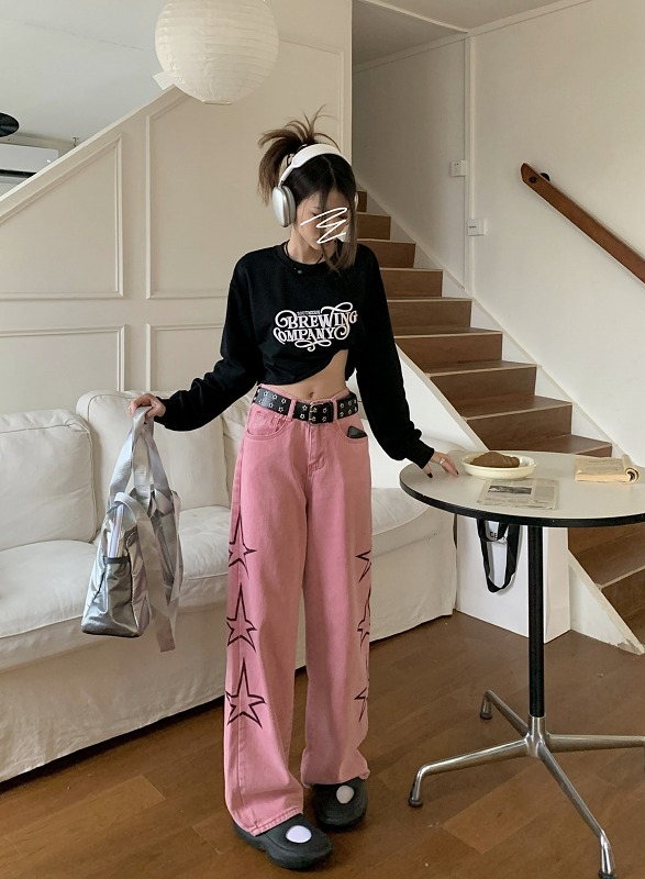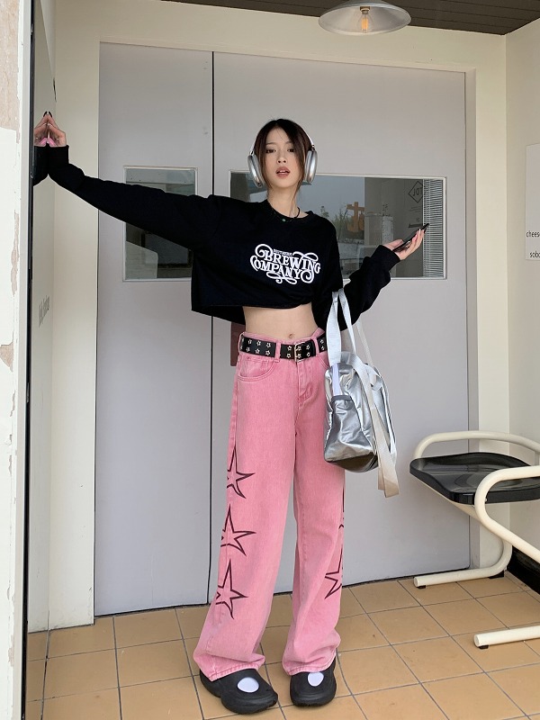 デニムパンツ ビジュー付き