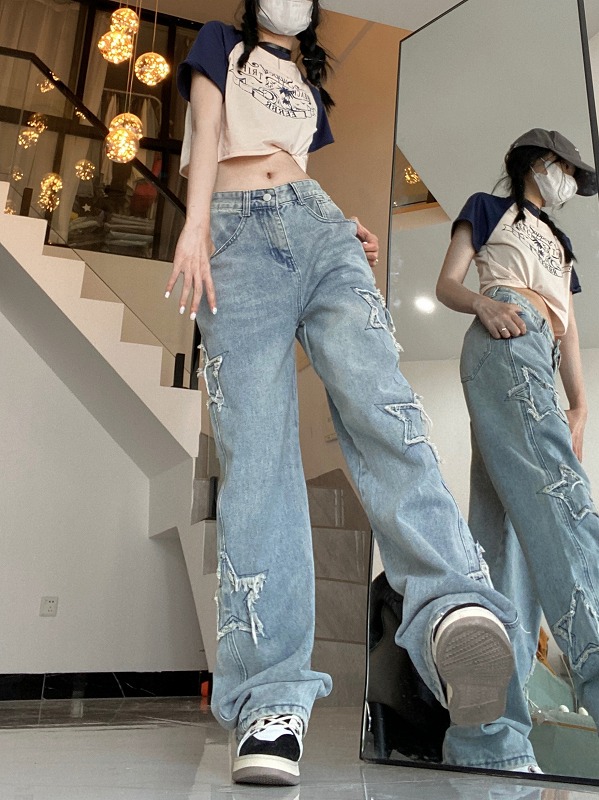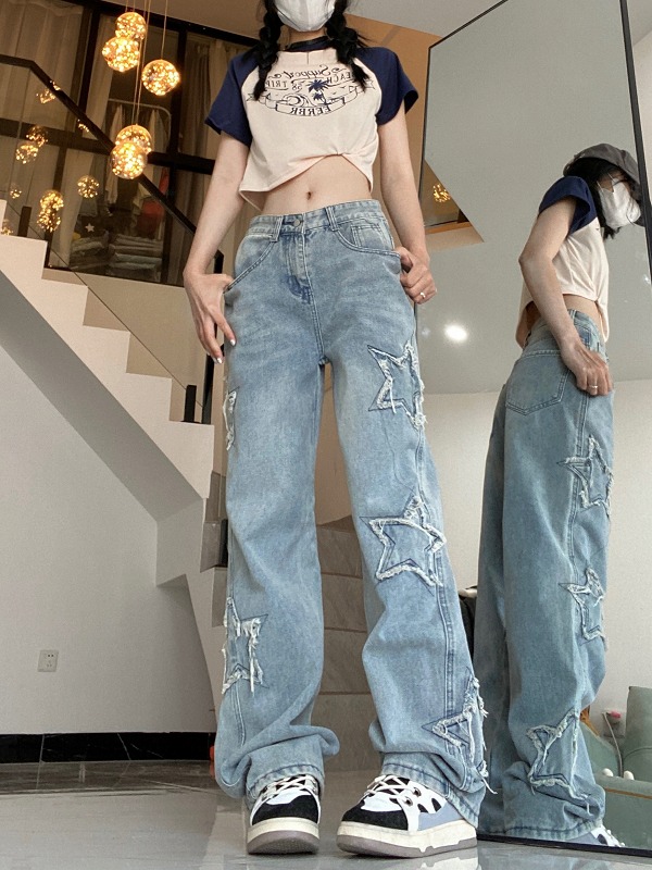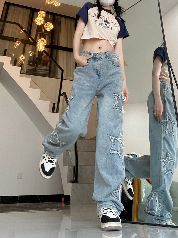 デニムパンツ ビジュー付き