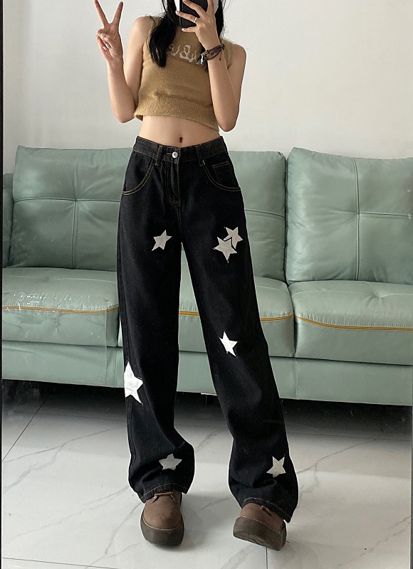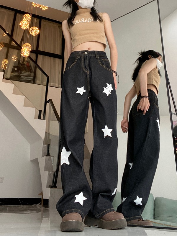 デニムパンツ ビジュー付き