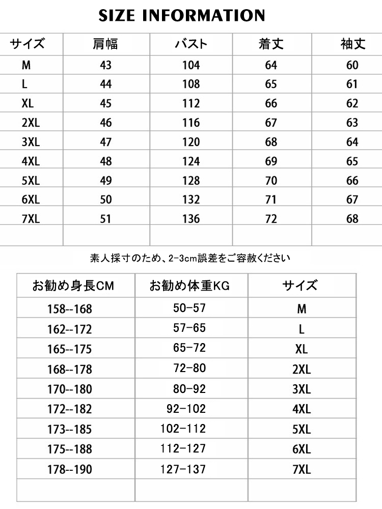 サイズ: M L XL 2XL 3XL 4XL 5XL 6XL 7XL
