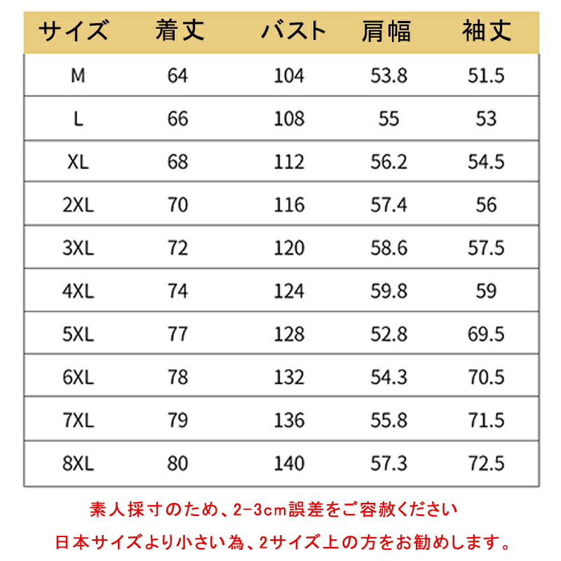 サイズ: M L XL 2XL 3XL 4XL 5XL 6XL 7XL 8XL
