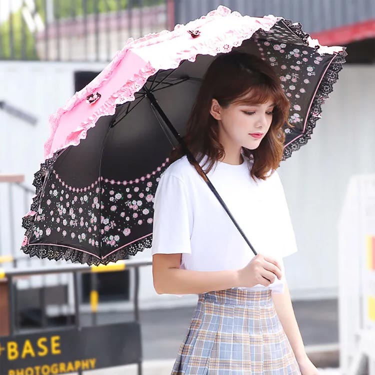 日傘 折りたたみ 紫外線カット フリル