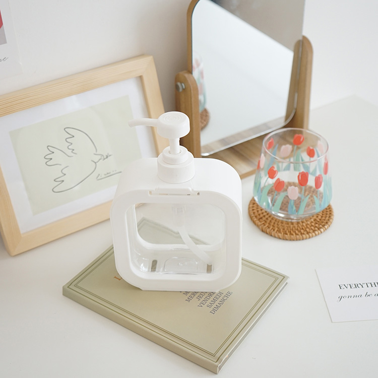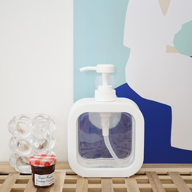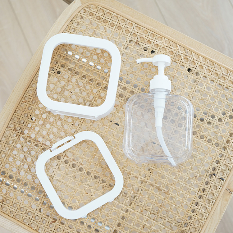 詰め替えボトルホルダー白ホワイトクリア透明韓国雑貨インテリア北欧おしゃれ洗面所浴室シャンプーリンスハンドソープアルコール容器収納四角大容量ソープ