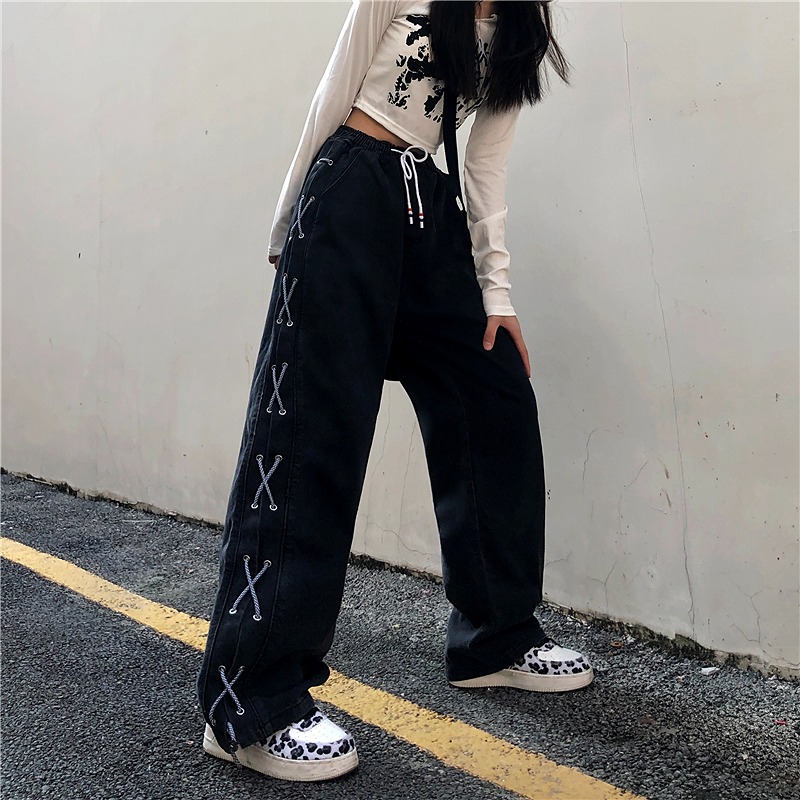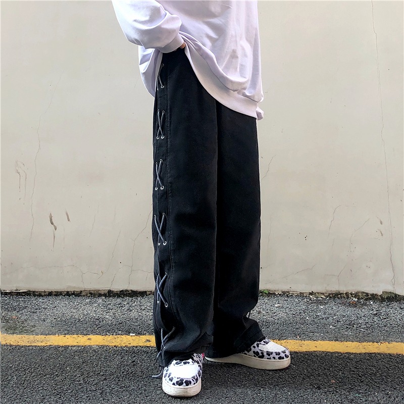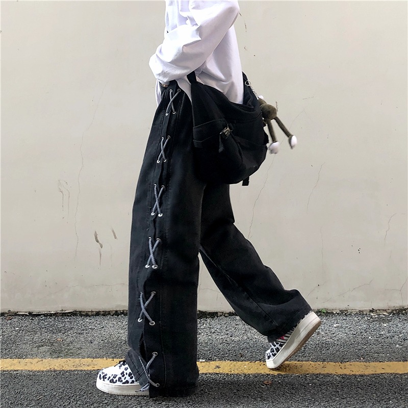 パンツ ズボン 切り替え 体型カバー ガウチョパンツ ワイド バギーパンツ 無地 原宿系ファッション 韓国風 ダンス 衣装 ダンサー ヒップホップ HIPHOP 個性 奇抜 かわいい 青文字系 ボトム