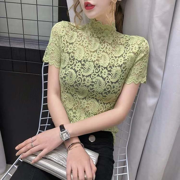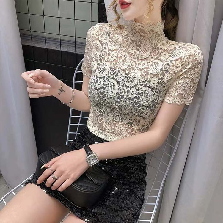 Tシャツ ブラウス 半袖 総レース ハ