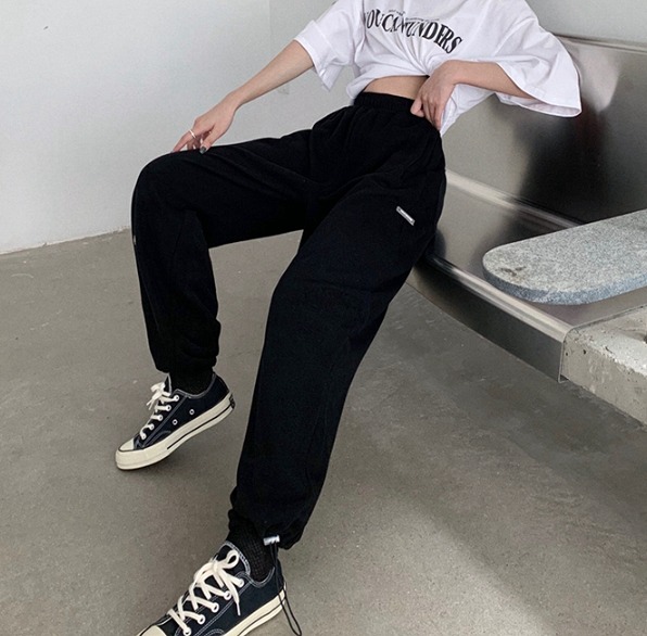 パンツ ズボン ウエストゴム ハイウエスト 切り替え 体型カバー 大きいサイズあり 原宿系ファッション 韓国風 ダンス 衣装 ダンサー ヒップホップ HIPHOP 個性 奇抜 かわいい 青文字系 ボト