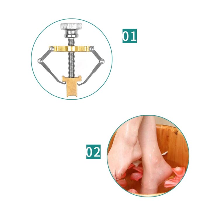 器具をつけたまま、38~42℃のお湯に20分~30分ほど足を浸し、爪を柔らかくします。
