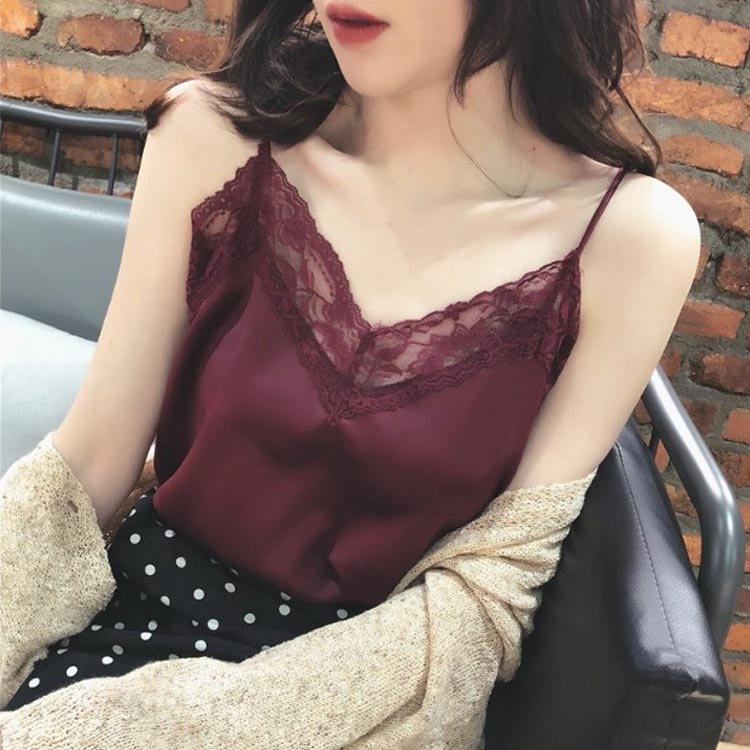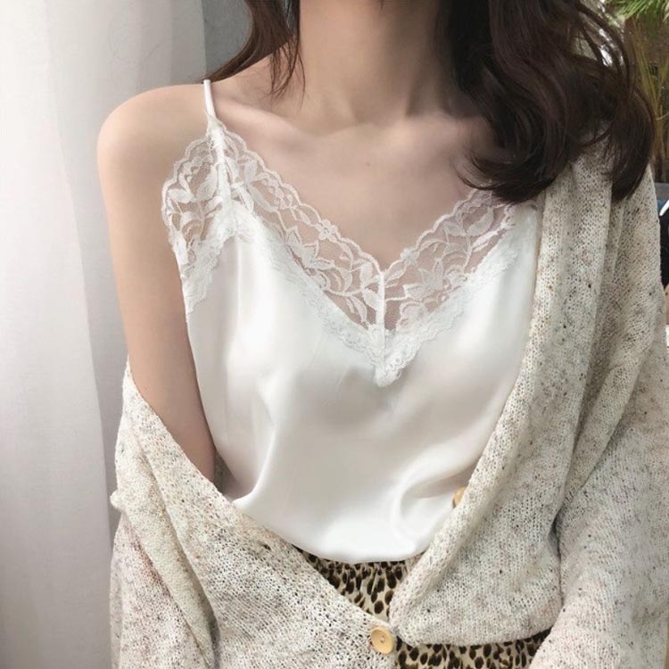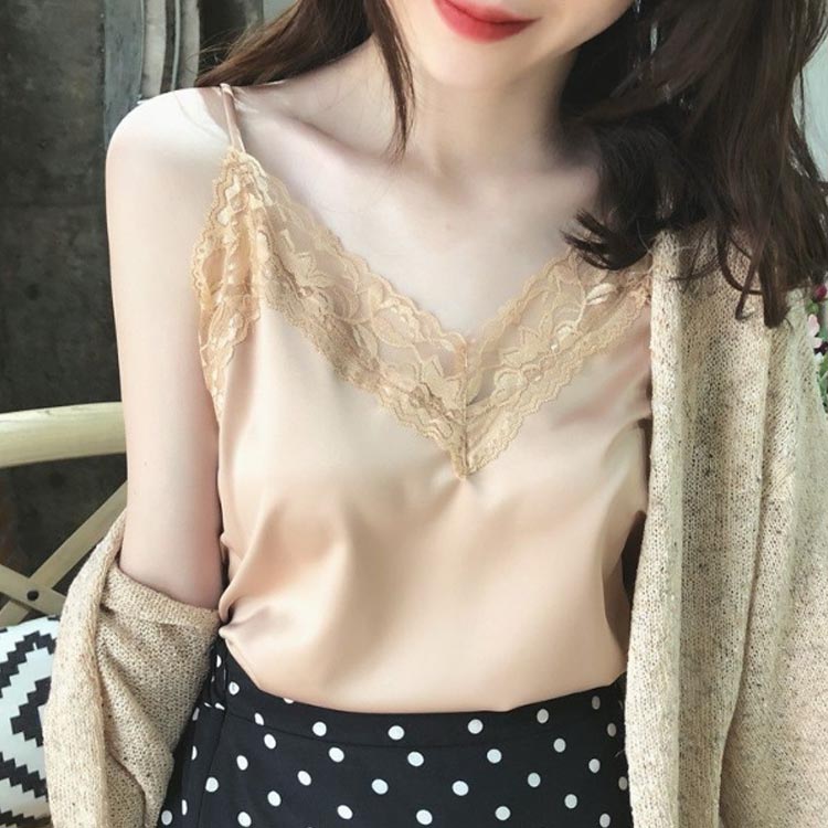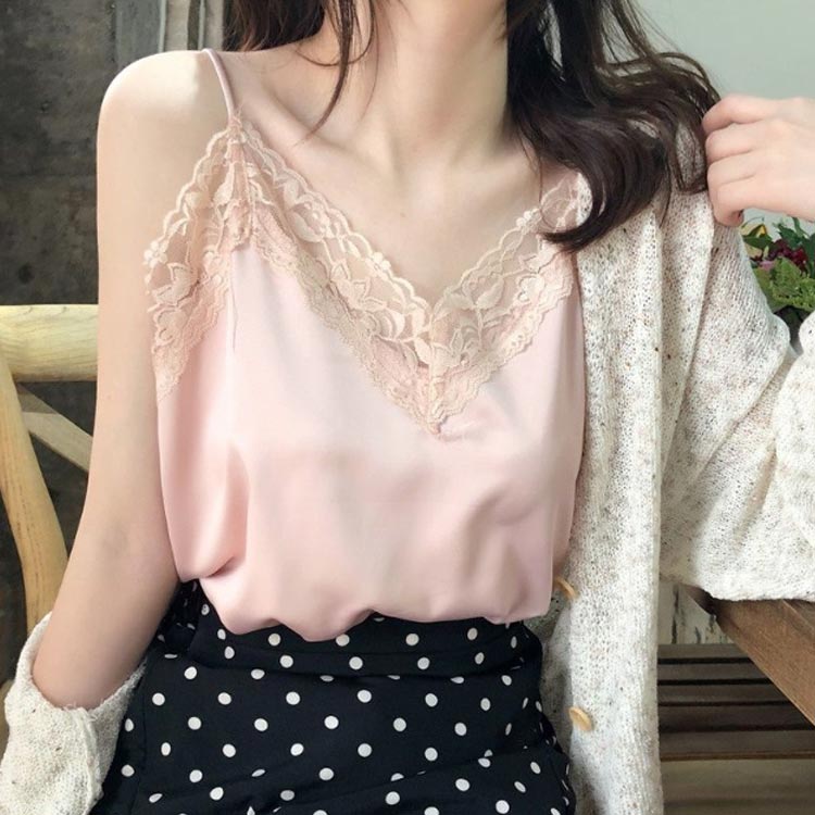 サテンキャミソール サテン レース イ