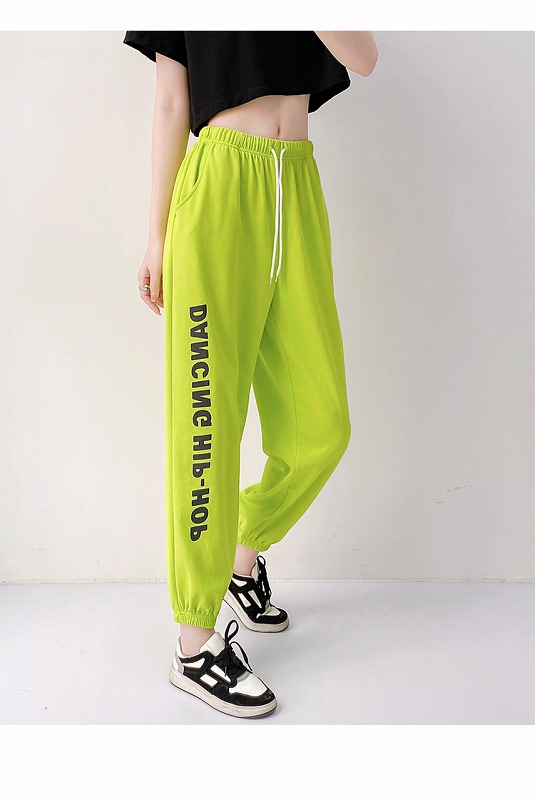 パンツ ズボン ウエストゴム 切り替え 体型カバー 大きいサイズあり 原宿系ファッション 韓国風 ダンス 衣装 ダンサー ヒップホップ HIPHOP 個性 奇抜 かわいい 青文字系 ボトムス レディー