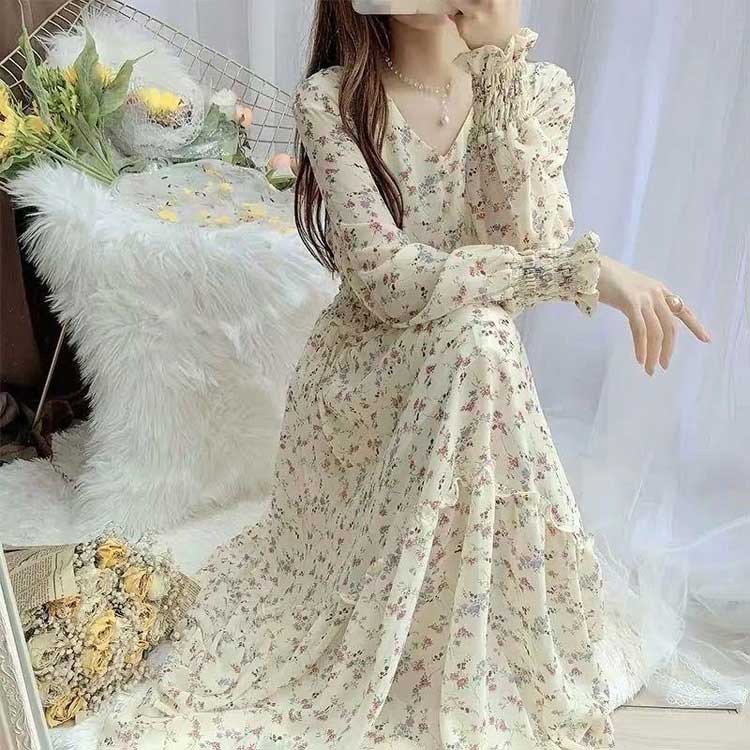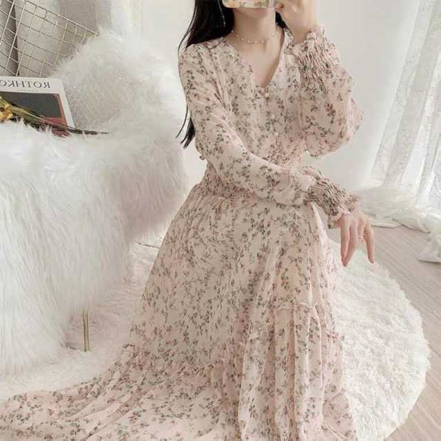 マキシワンピース ロング丈 Vネック