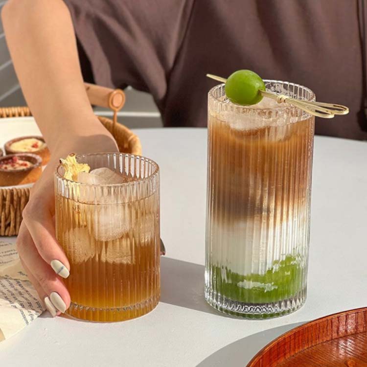 ガラスコップ ストライプ柄 ガラス 高