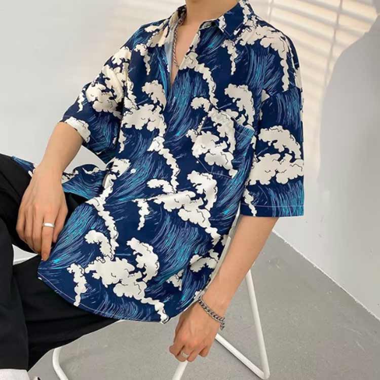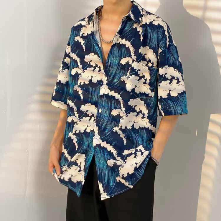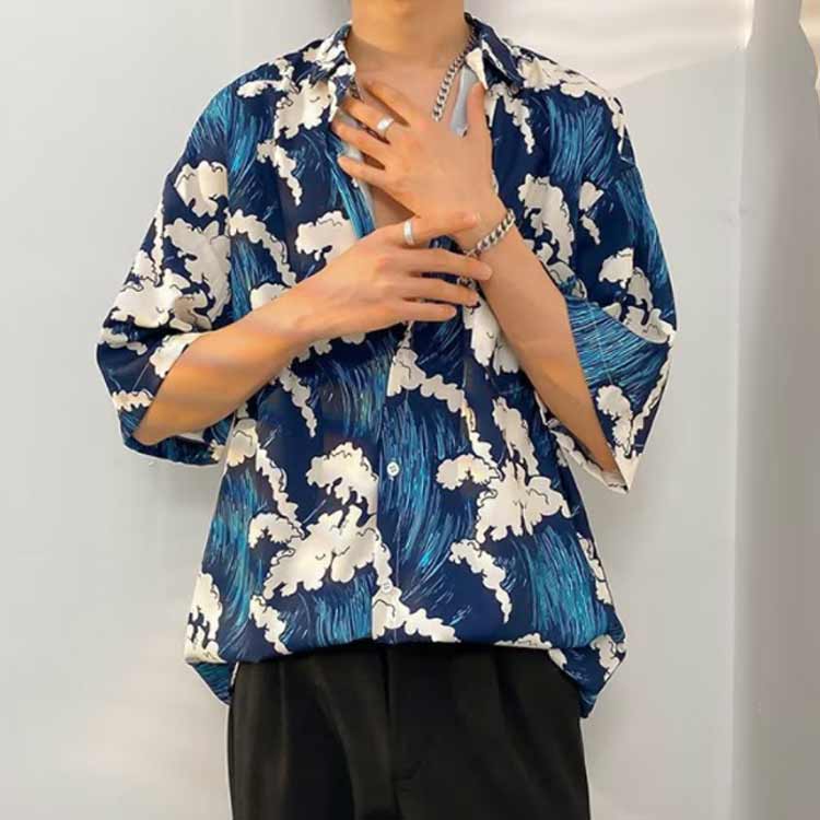 青海波柄 和柄 半袖 柄シャツ アロハ