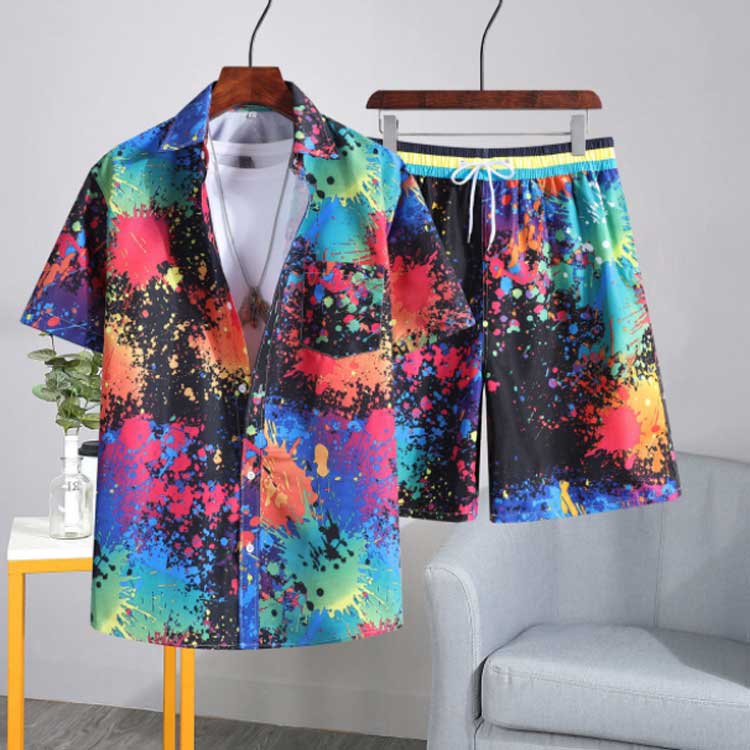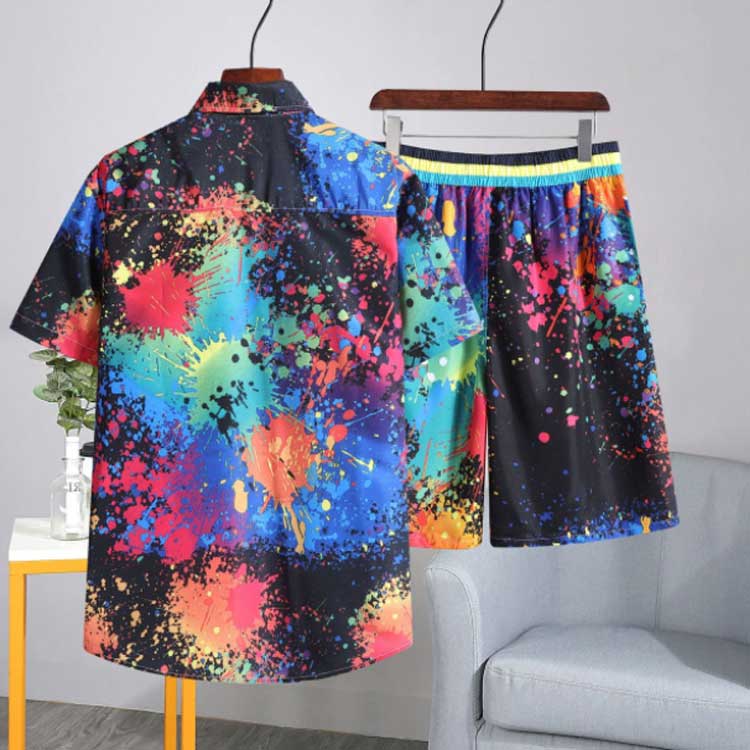ペンキ柄 柄シャツ 開襟 半袖 カジュ