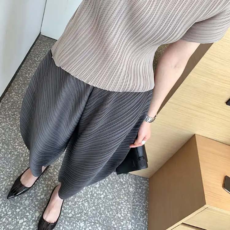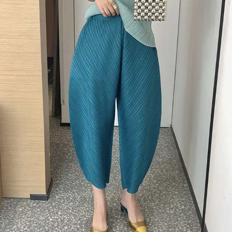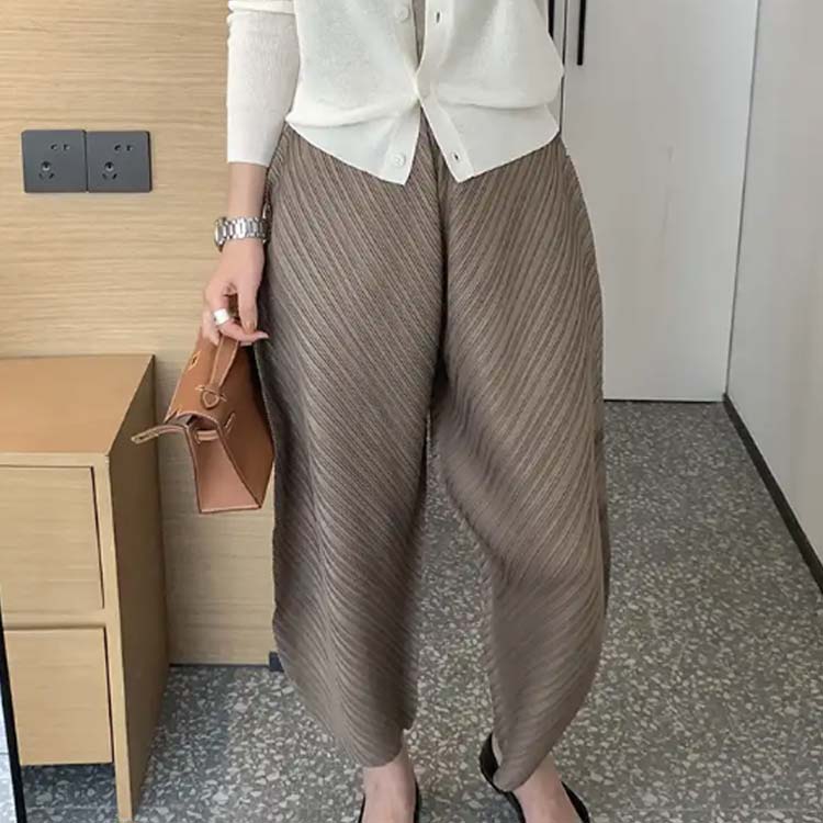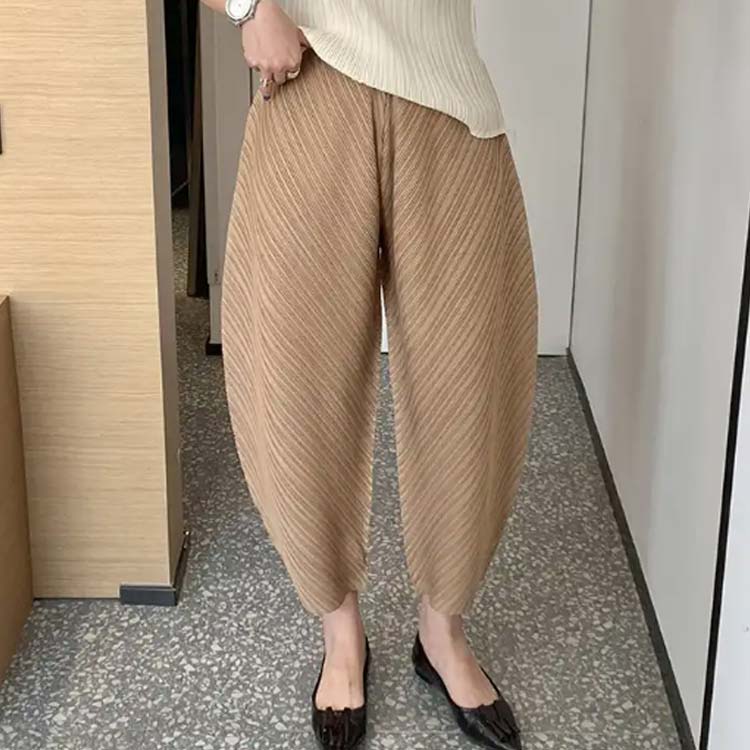 ワイド 20代 カーブパンツ プリーツ