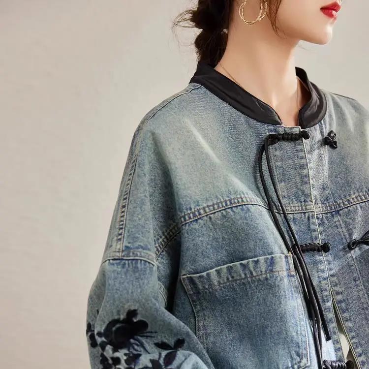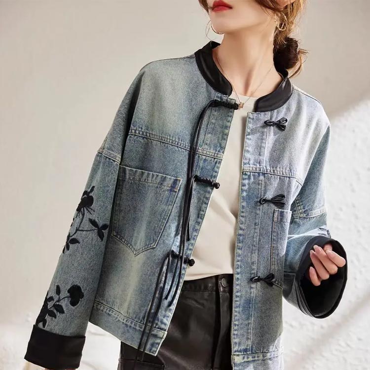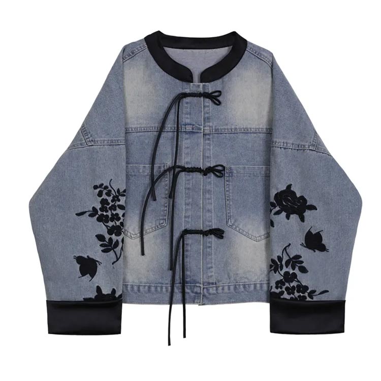 チャイナ風 ノーカラー デニムジャケッ
