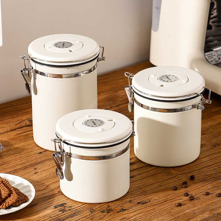 【日付文字盤付き】密閉容器の蓋には日付を示す文字盤があります。文字盤を回すだけでコーヒー豆を入れた日にちを記録することができます。長期間保存して賞味期限が切れたことを知らずに食べてしまうことが防げます。