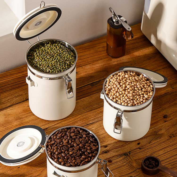 【高密閉性】珈琲キャニスターの蓋にはシリコン製パッキンとステンレス製ロック式クリップの二重設計で、密閉性が高く、空気から完全に遮断し、防湿防塵効果が抜群、食品の鮮度が落ちないように長期間保存できます。