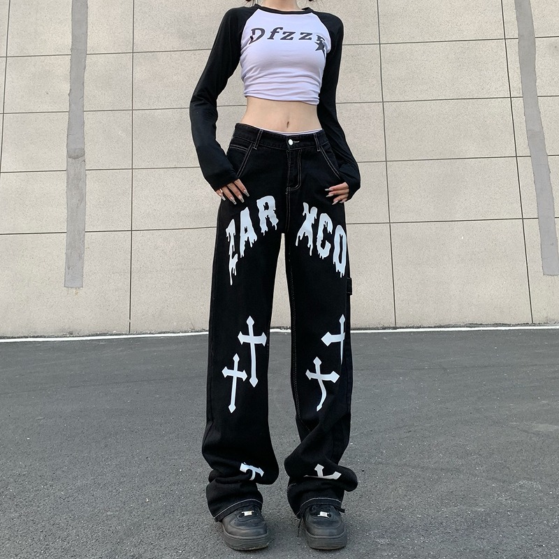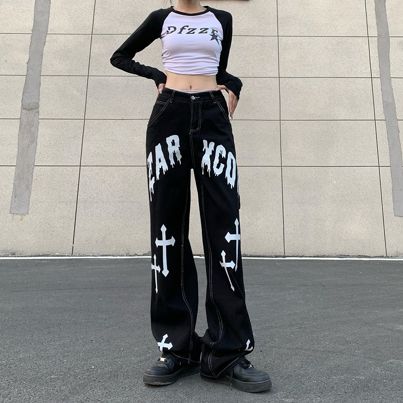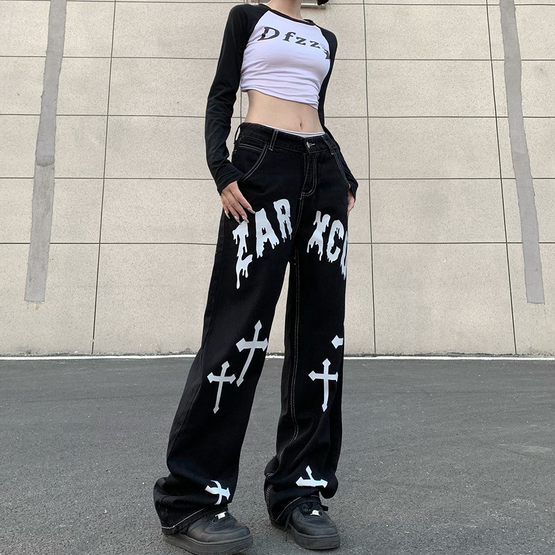 デニムパンツ ビジュー付き