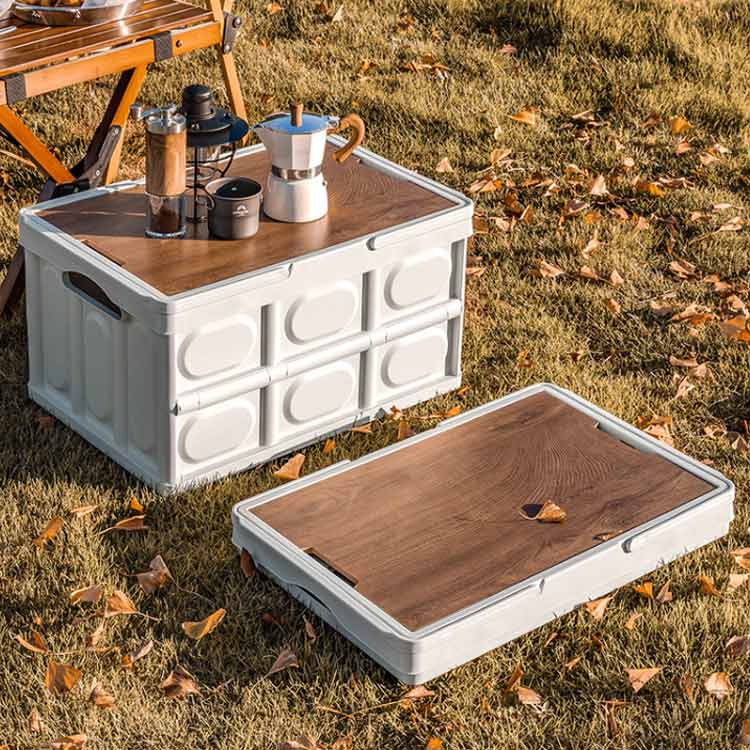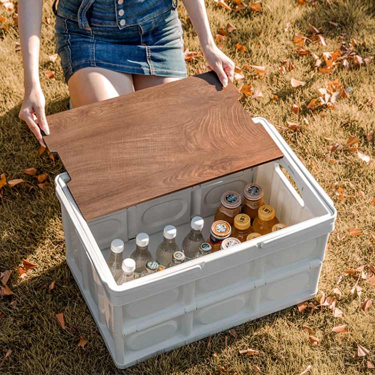 車載収納 木蓋付き アウトドアテーブル コンテナボックス 折りたたみ 屋外 キャンプ キャンプテーブル