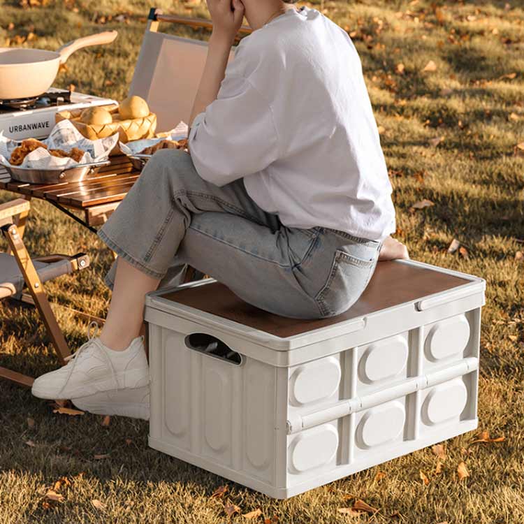 【木蓋付き】フタ付きで積み重ねて収納が可能、密封性も高いので、防塵効果も期待できるため、クローゼットや押入れ収納できる。また、アウトドアテーブルとして使用可能。