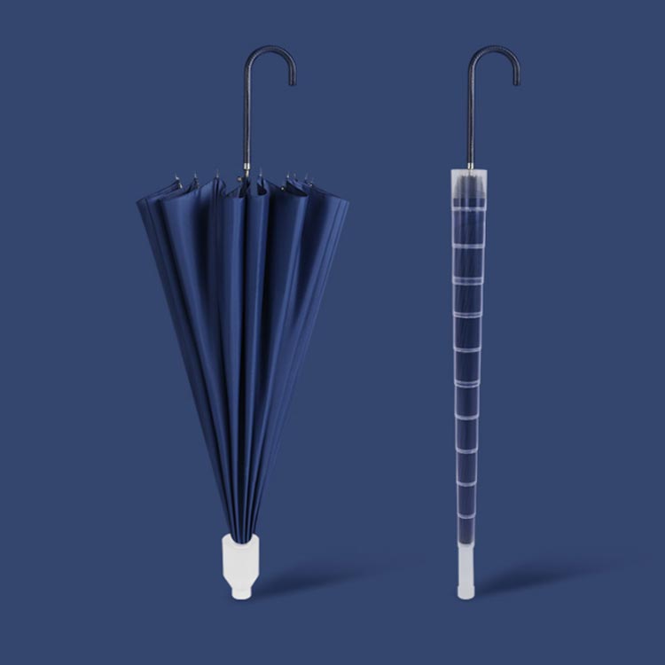 16本のグラスファイバー傘骨を採用し、風にも強くて、長持ちできます。強風で裏返っても元に戻ります。安易に折れたり曲がったりする心配ありません。全長約85cm、重さは470gになります。
