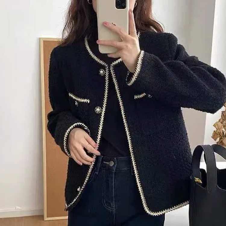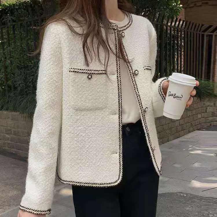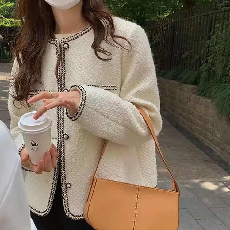 ノーカラーツイードジャケット ショート