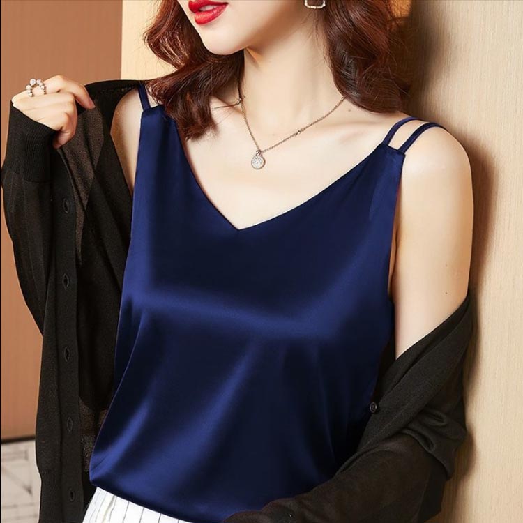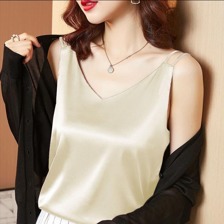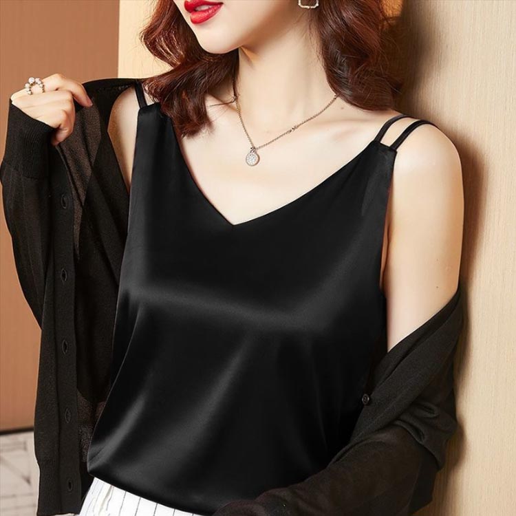カップなし サテン タンクトップ イン