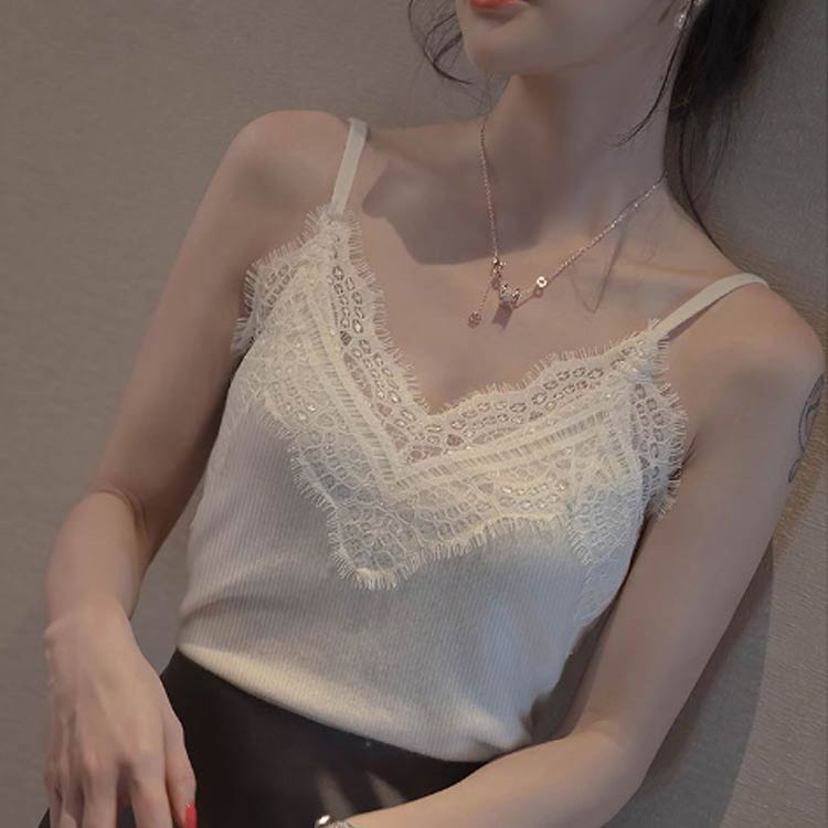レース キャミソール カップなし リブ