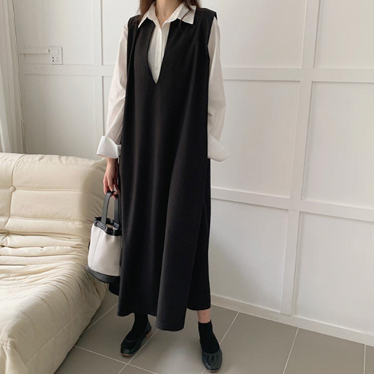 重ね着風 レイヤータンク ワンピース
