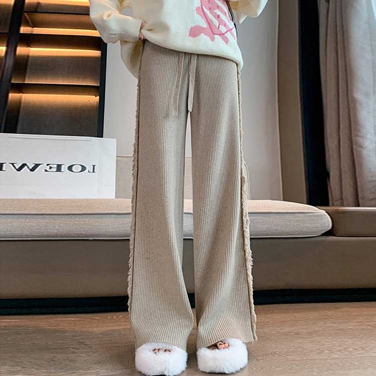 ニット ワイドパンツ レディース フリ