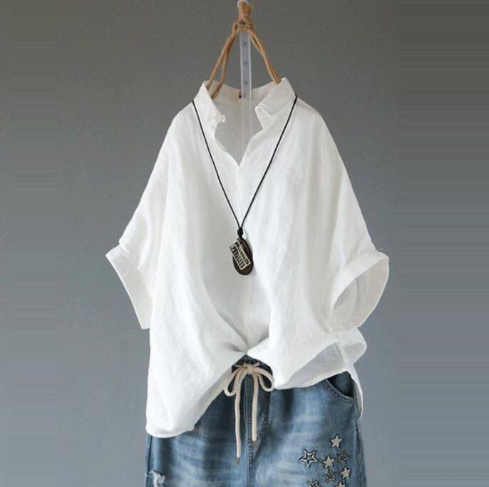 レディースシャツ トップス 綿麻ブラウス 普通着 デート 春夏 通勤 女子会 五分袖 お出かけ 上品 シンプル カジュアル オシャレ ファション