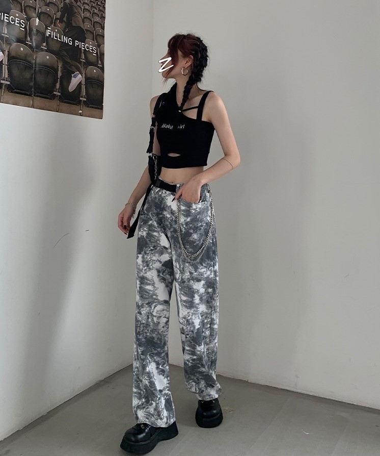 デニムパンツ ビジュー付き