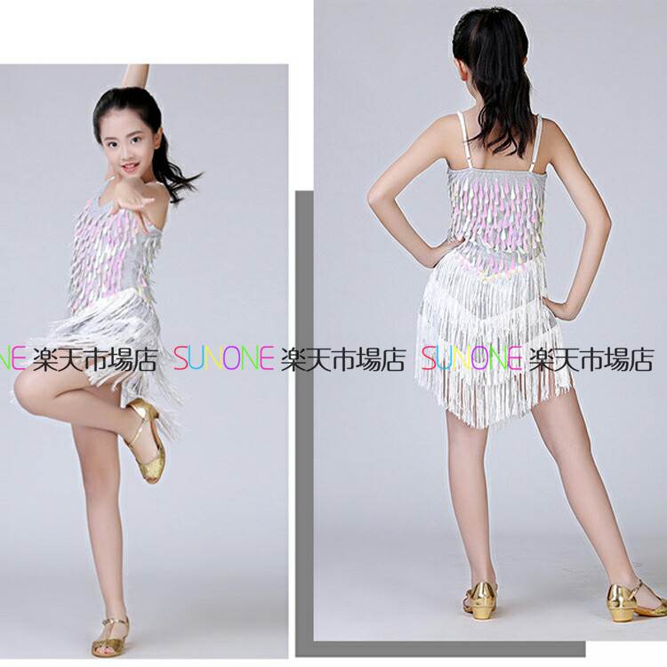 スパンコール ダンス衣装 ワンピース ラテンダンス衣装 ドレス 子供 キッズ 女の子 ジュニア ジャズダンス 衣装 チアリーダー コスチューム チアガール 衣装 ステージ衣装