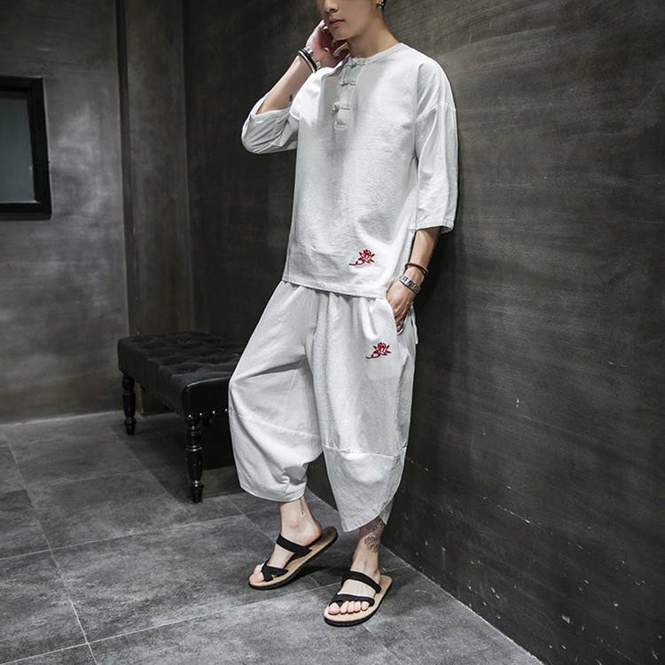 リネン セットアップ メンズ 半袖 綿