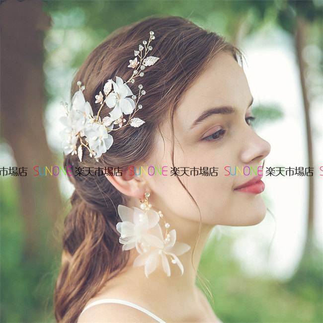 イヤリング付き 2点セット ヘッドアクセサリー ウェディング ブライダル 披露宴 上品質なヘッドドレス レディース お花嫁 人結婚式 2次会 演奏会 発表会 コンサート 髪飾り 着物