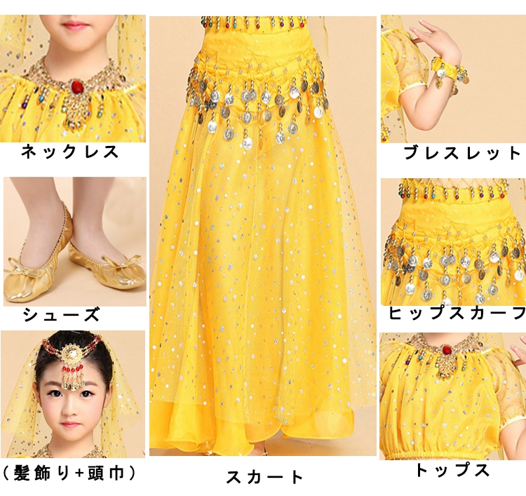 ハロウィン コスプレ 子供 仮装 アラジン衣装 ハロウィン衣装 ベリーダンス 4点セット パーティー 発表会 衣装 アラジンコスプレ ジャスミン キッズ ベリーダンス 衣装 子供用 セット