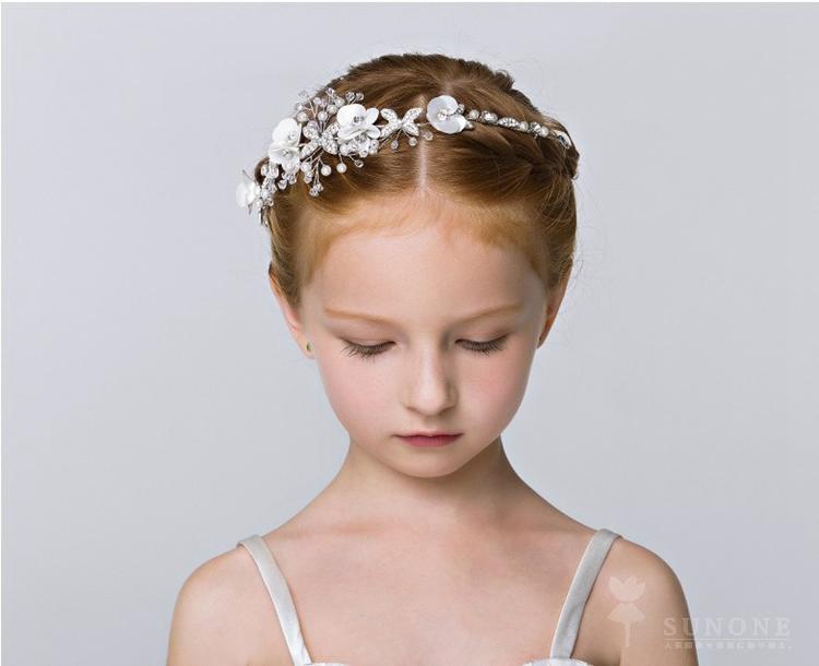 ヘアアクセサリ ホワイトパール 子供髪飾り 発表会 フラワーティアラ ヘッドドレス 結婚式 フラワーガール キッズ