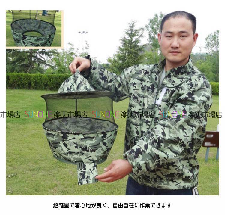 養蜂用蜂防護服 迷彩 フェイスネット付