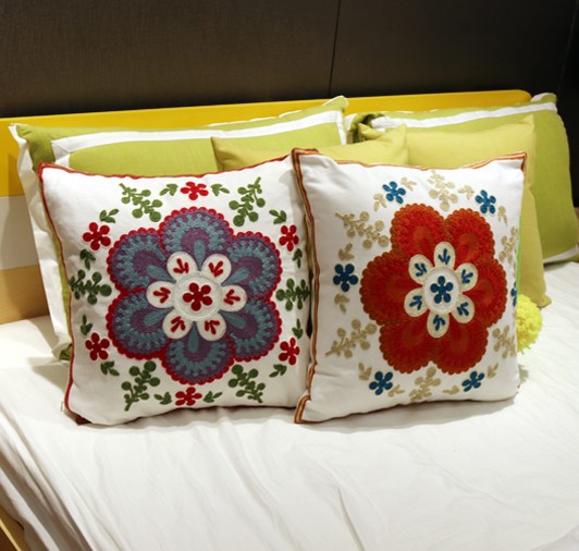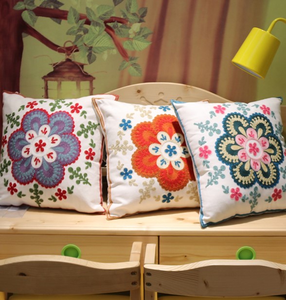 クッションカバー7色45cm×45cm韓国雑貨インテリアおしゃれ北欧ソファー可愛いシンプルふわふわカラフル高級感ベッド車ディスプレイアンティークレトロ刺繍コットン布アジアン模様白花柄刺繍フラワー