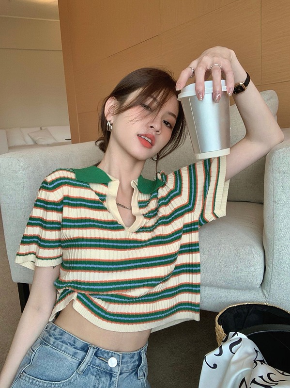 ニット セーター ショート丈 薄手 バ