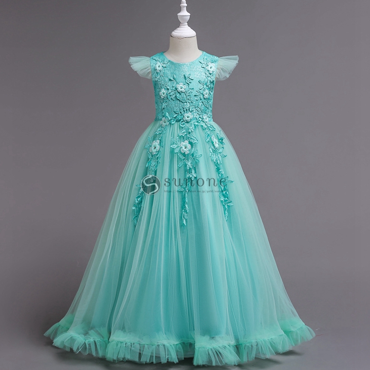 ガールズドレス 子ども お姫様ドレス ロングドレス 子供ドレス 女の子ドレス カラードレス レースドレス フォーマルドレス 大きいサイズ 七五三 演出舞台 結婚式 卒業園 入園式 ピア